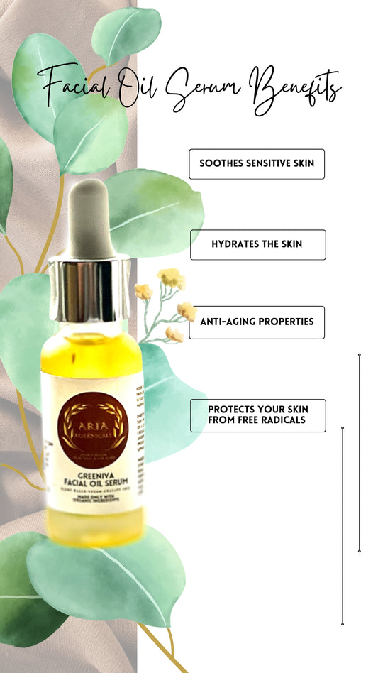 Aria Botanicals Facial Oil serum is best fit for your daily beauty routine. Recharge, replenish and norish your skin with our Greeniva Facial Oil Serum.