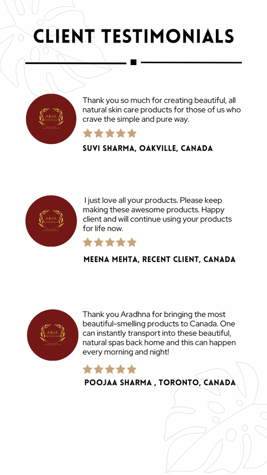 Aria Botanicals is a proud Canadian-owned small business in the town of Oakville, Canada. Our products are mindfully selected to meet the standards of safety and luxury. You can feel confident to use these small batches of skin care curated to accomodate your skin goals.